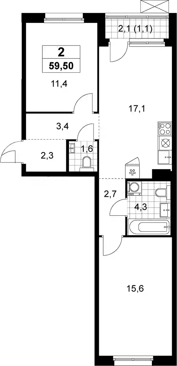 3-к.квартира, 58.4 м², 10 эт. в ЖК ЖК Прокшино Корпус 9.4