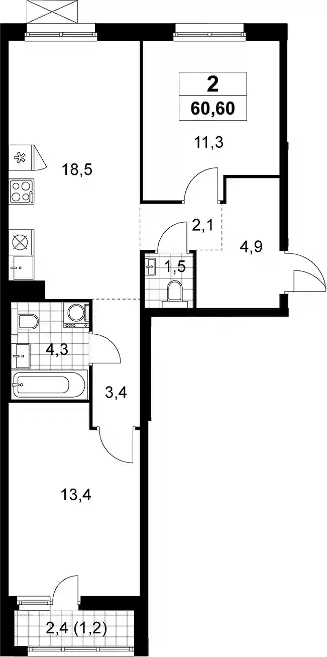 3-к.квартира, 59.4 м², 6 эт. в ЖК ЖК Прокшино Корпус 9.4