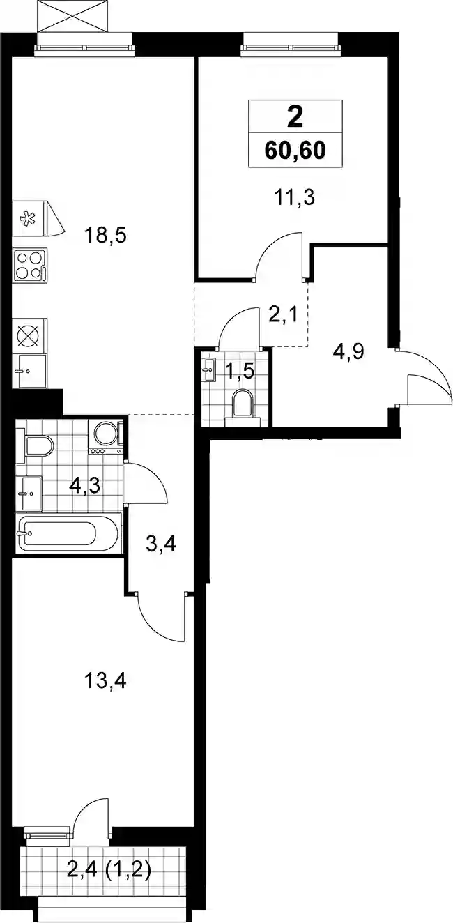 59.4 м2