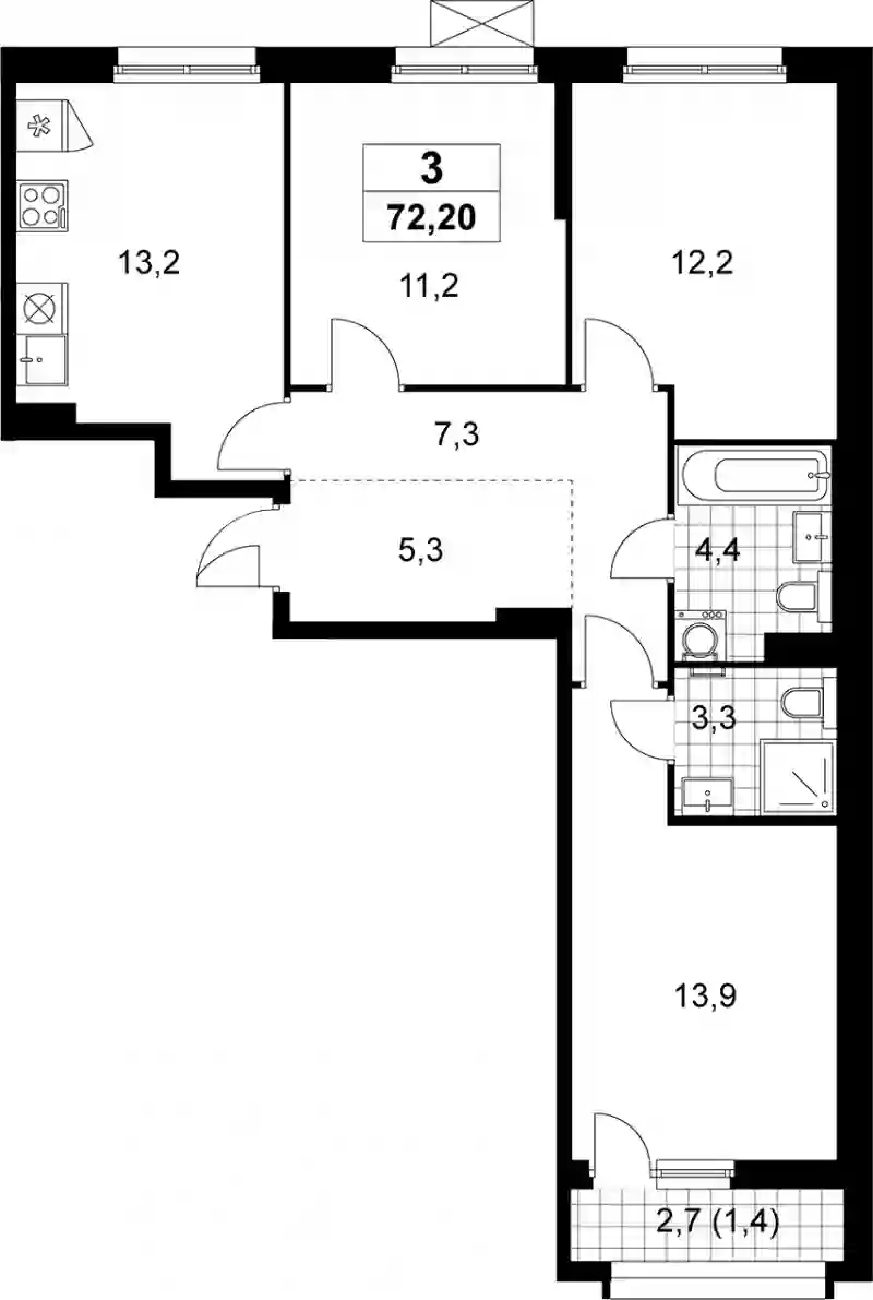 3-к.квартира, 70.8 м², 10 эт. в ЖК ЖК Прокшино Корпус 9.4