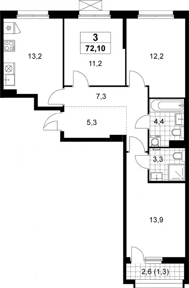 3-к.квартира, 70.8 м², 5 эт. в ЖК ЖК Прокшино Корпус 9.4