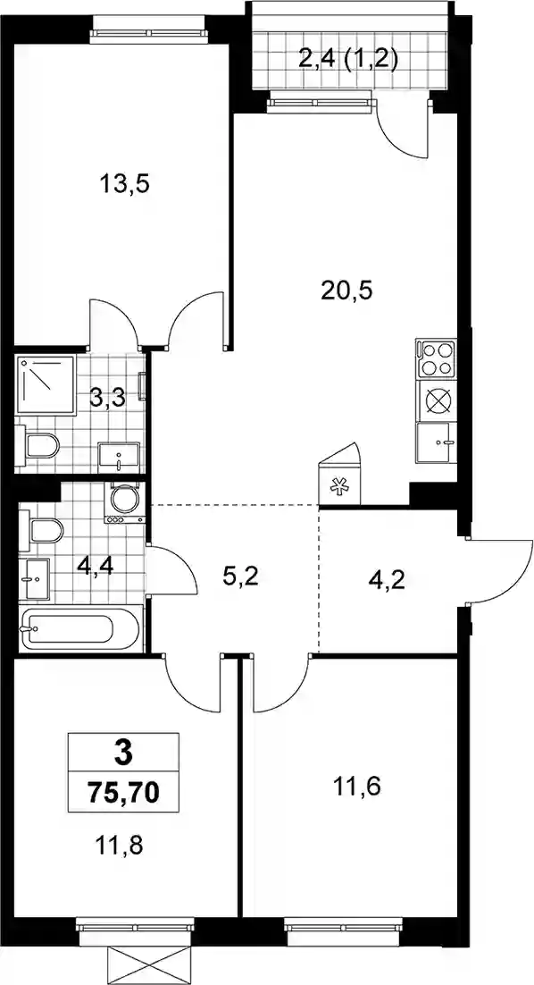 4-к.квартира, 74.5 м², 6 эт. в ЖК ЖК Прокшино Корпус 9.4