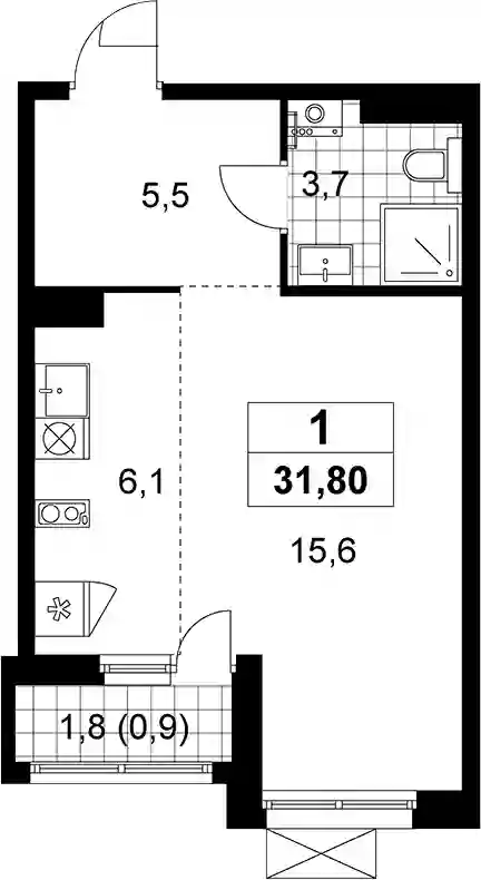 13 837 187 ₽Студия, 32.7 м², 5 эт.