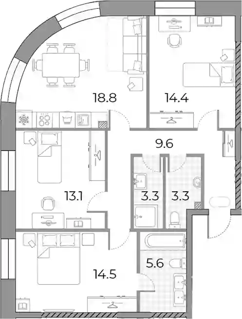 43 798 163 ₽3-к.квартира, 86 м², 9 эт.