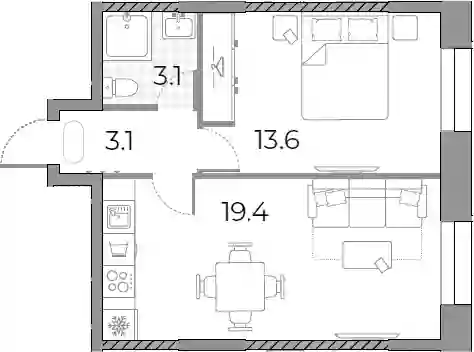 19 913 084 ₽2-к.квартира, 36.1 м², 33 эт.