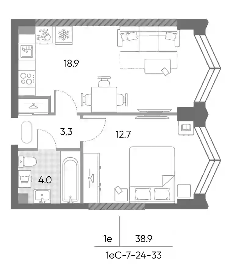 20 189 054 ₽2-к.квартира, 38.7 м², 19 эт.