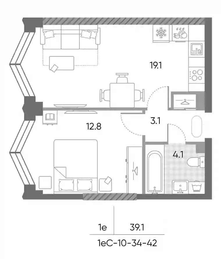 24 183 176 ₽2-к.квартира, 39.3 м², 42 эт.