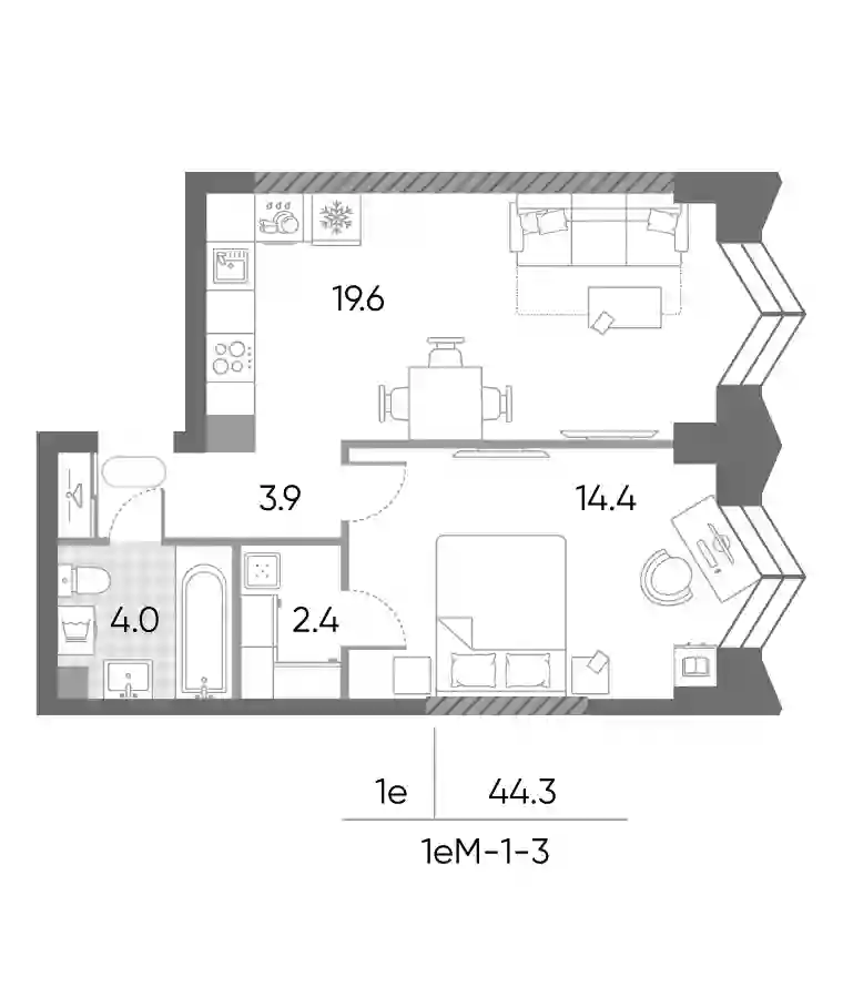 24 131 103 ₽2-к.квартира, 39.3 м², 41 эт.