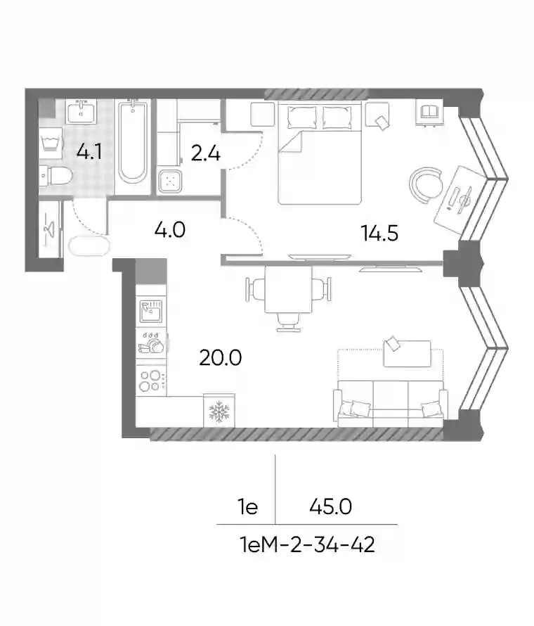 24 731 843 ₽2-к.квартира, 45.5 м², 14 эт.