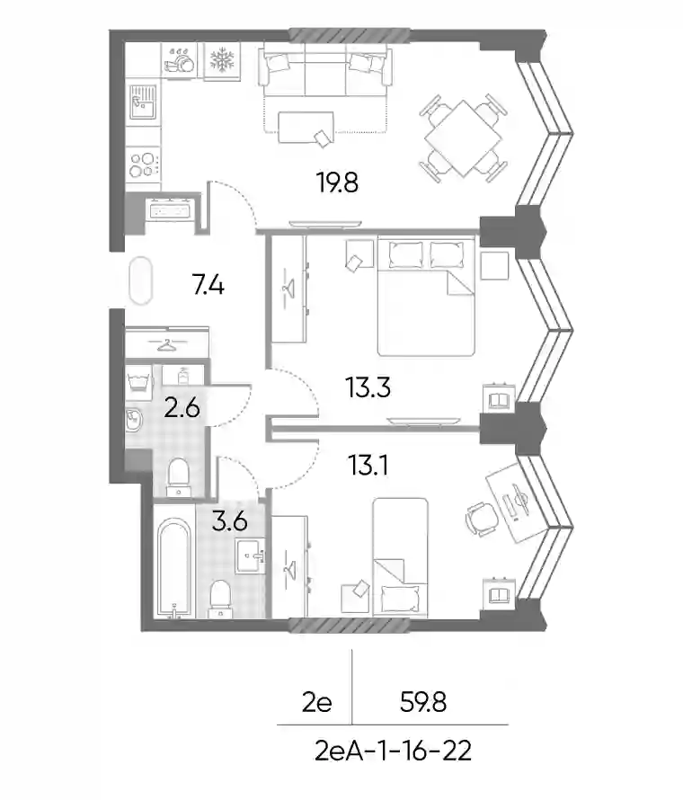 31 738 824 ₽3-к.квартира, 58.5 м², 19 эт.