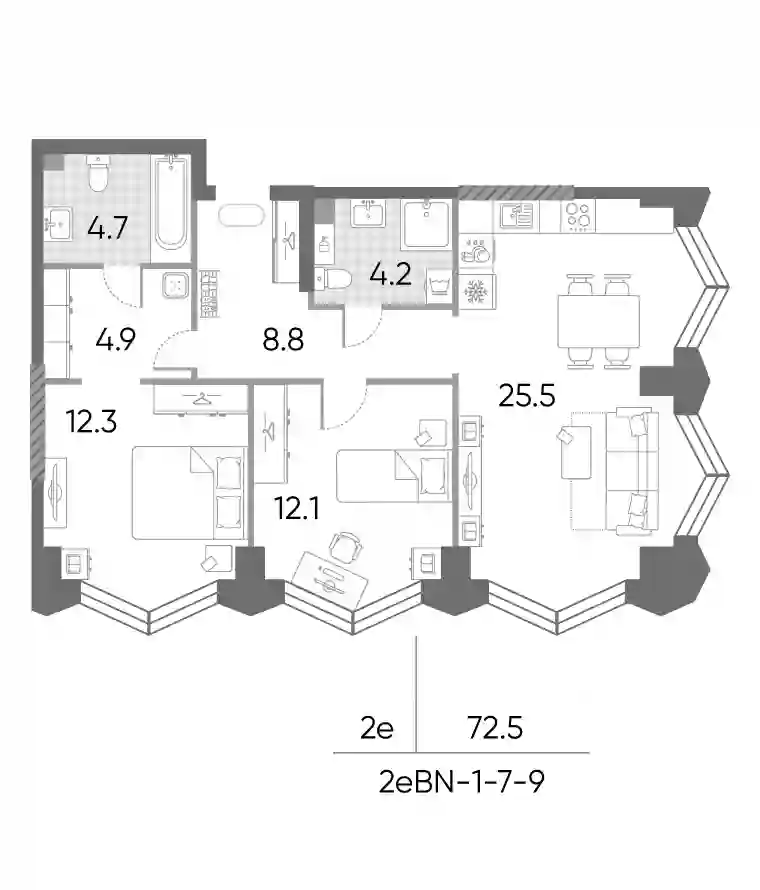3-к.квартира, 72.5 м², 7 эт. в ЖК ЗилАрт Корпус SPARK-1