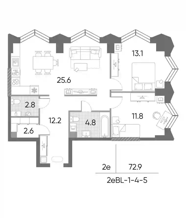 3-к.квартира, 72.9 м², 4 эт. в ЖК ЗилАрт Корпус SPARK-1
