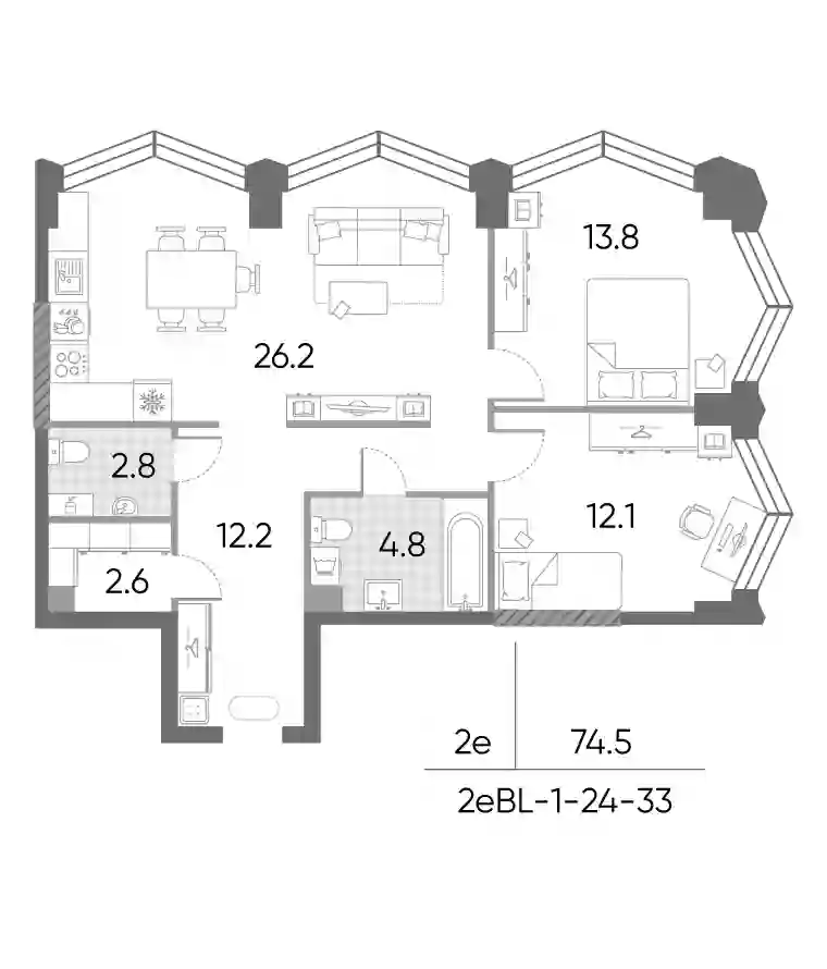 3-к.квартира, 74.5 м², 32 эт. в ЖК ЗилАрт Корпус SPARK-1