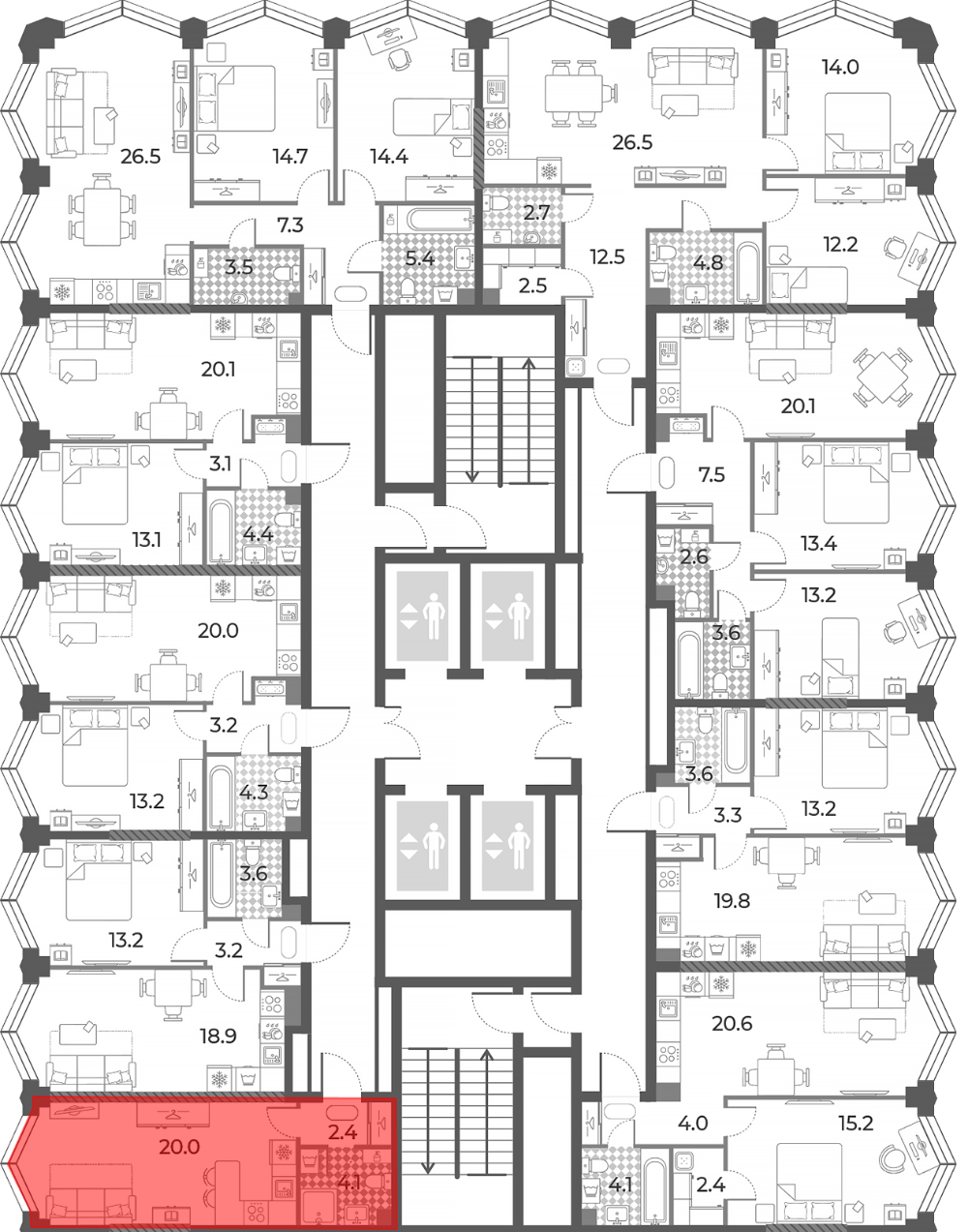 19 940 094 ₽Студия, 24.3 м², 28 эт.