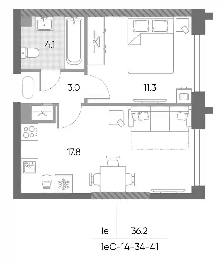 20 602 870 ₽2-к.квартира, 35.4 м², 17 эт.