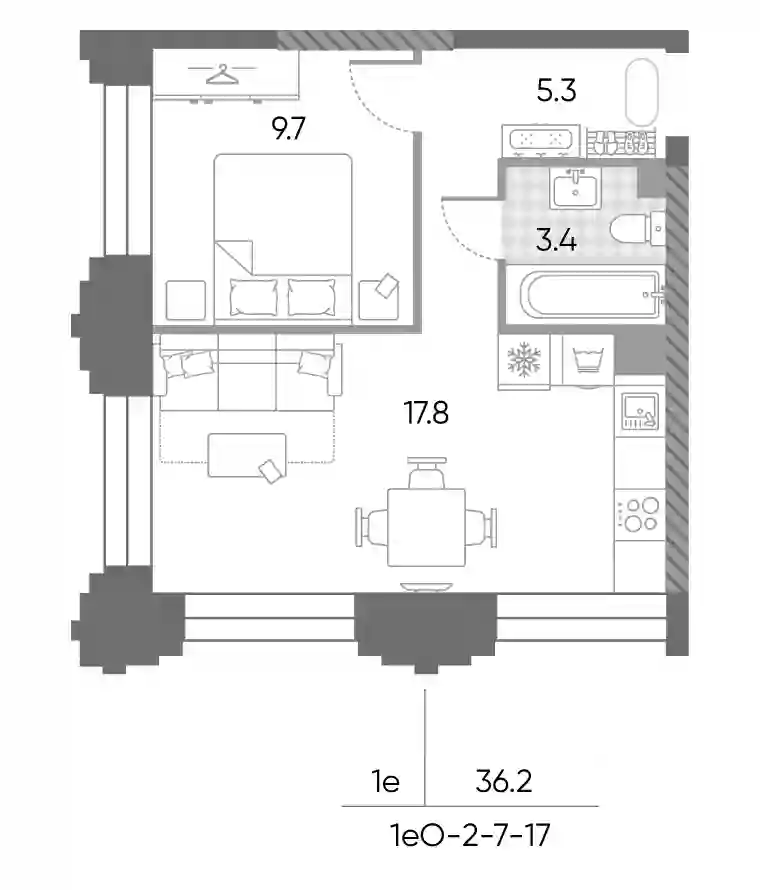 20 107 805 ₽2-к.квартира, 33.5 м², 35 эт.