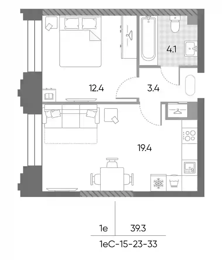 21 145 783 ₽2-к.квартира, 39.5 м², 12 эт.