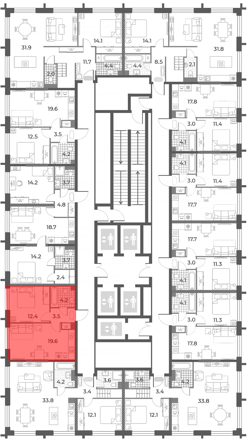 20 570 948 ₽2-к.квартира, 39.8 м², 19 эт.