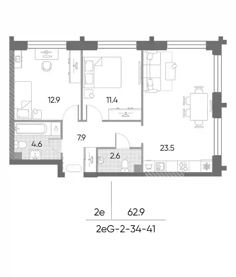 62.9 м2