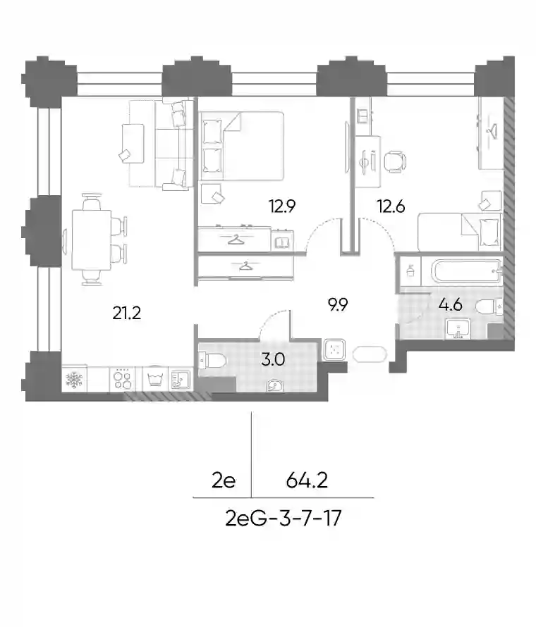 В комплексе «Дмитровское небо»предложено множество планировочных решений: в наличии квартиры, как классического типа, так и европланировки. Сдаются они без стен, высотой потолков 2,7 метра и увеличенными окнами.