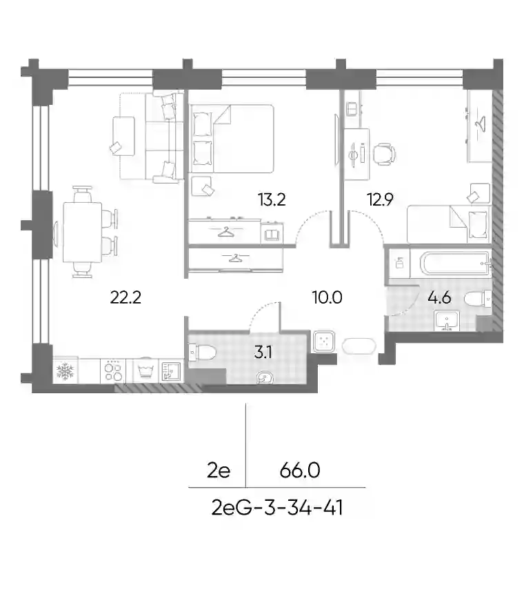 34 543 979 ₽3-к.квартира, 66.5 м², 18 эт.