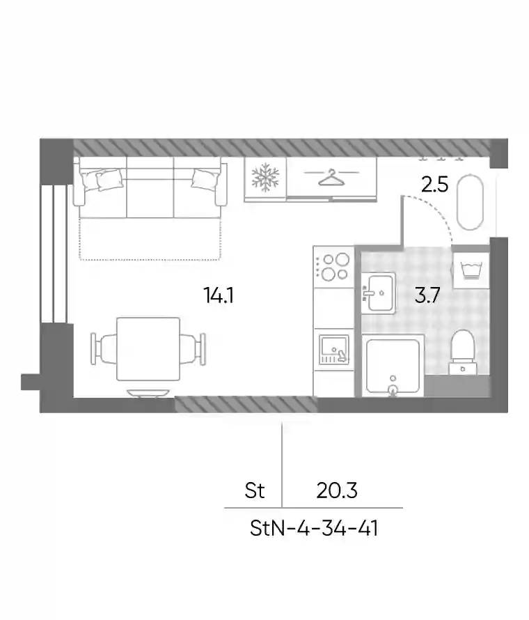 14 411 173 ₽Студия, 21.1 м², 38 эт.