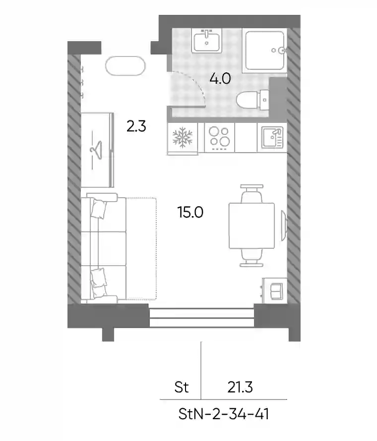 14 538 300 ₽Студия, 21.1 м², 33 эт.