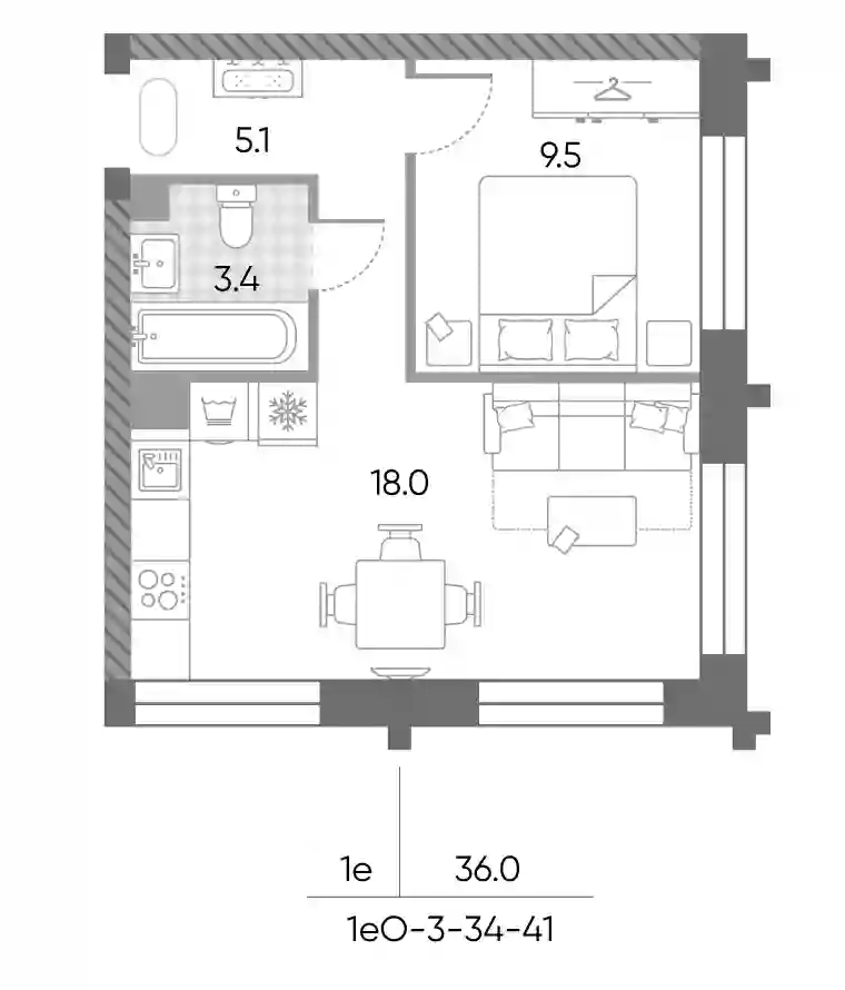 20 821 495 ₽2-к.квартира, 35.1 м², 34 эт.