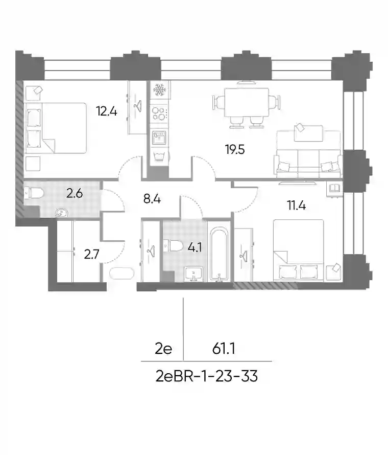 3-к.квартира, 61.1 м², 26 эт. в ЖК ЗилАрт Корпус SPARK-3