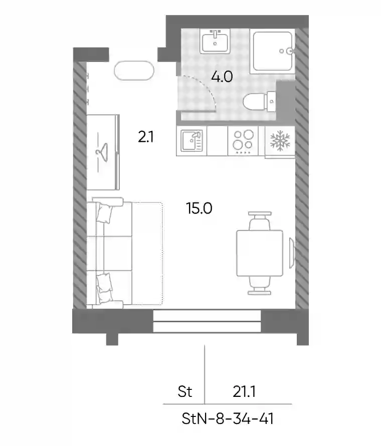 Студия, 21.1 м², 40 эт. в ЖК ЗилАрт Корпус SPARK-3