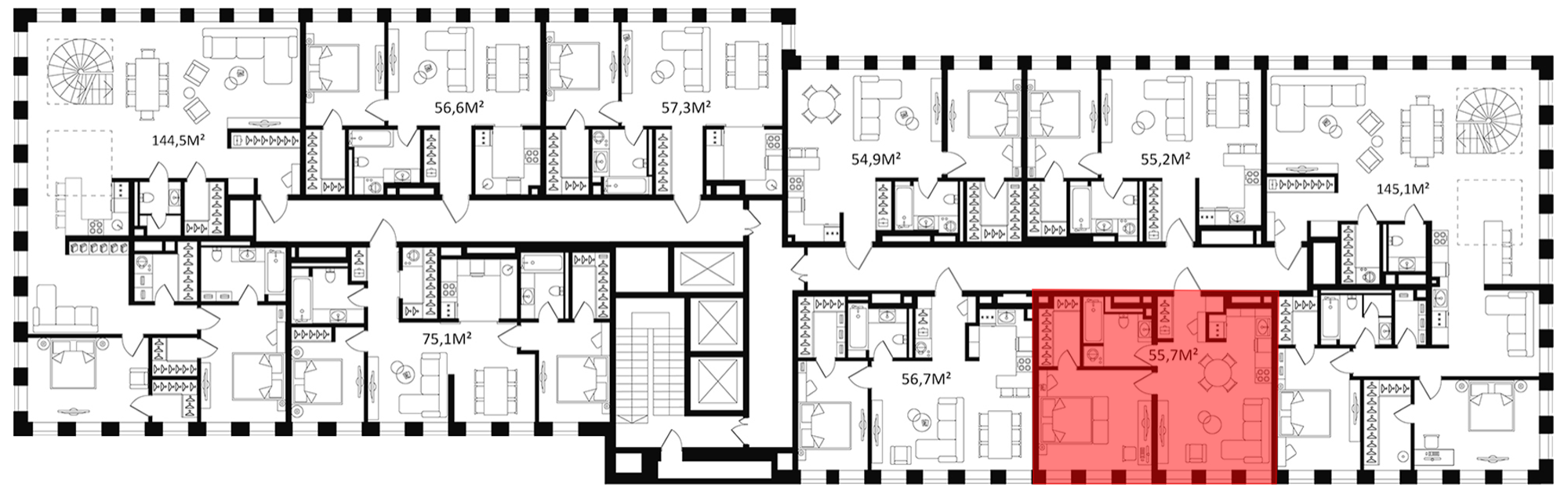 2-к.квартира, 55.7 м², 23 эт. в ЖК Зорге, 9 Корпус Manhattan