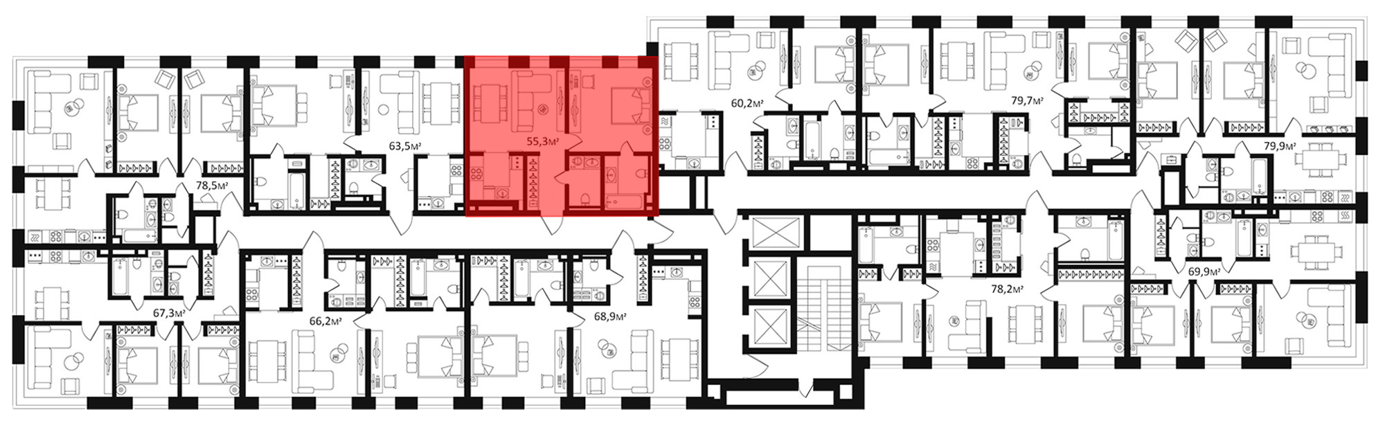 2-к.квартира, 55.3 м², 21 эт. в ЖК Зорге, 9 Корпус Soho