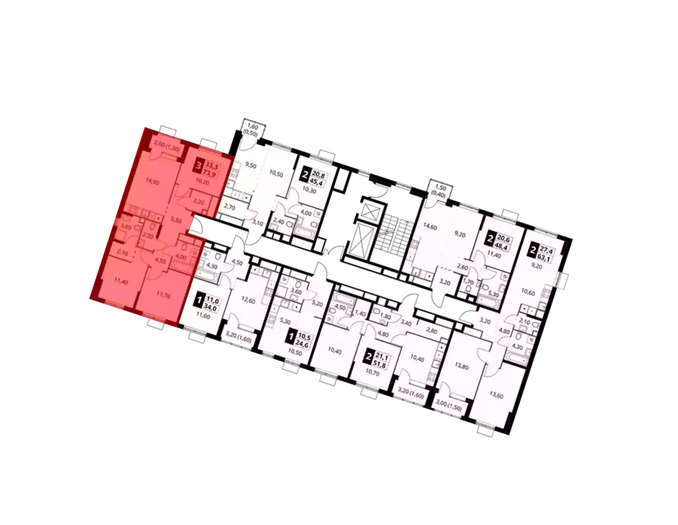 - Жилая площадь 33.3 м²