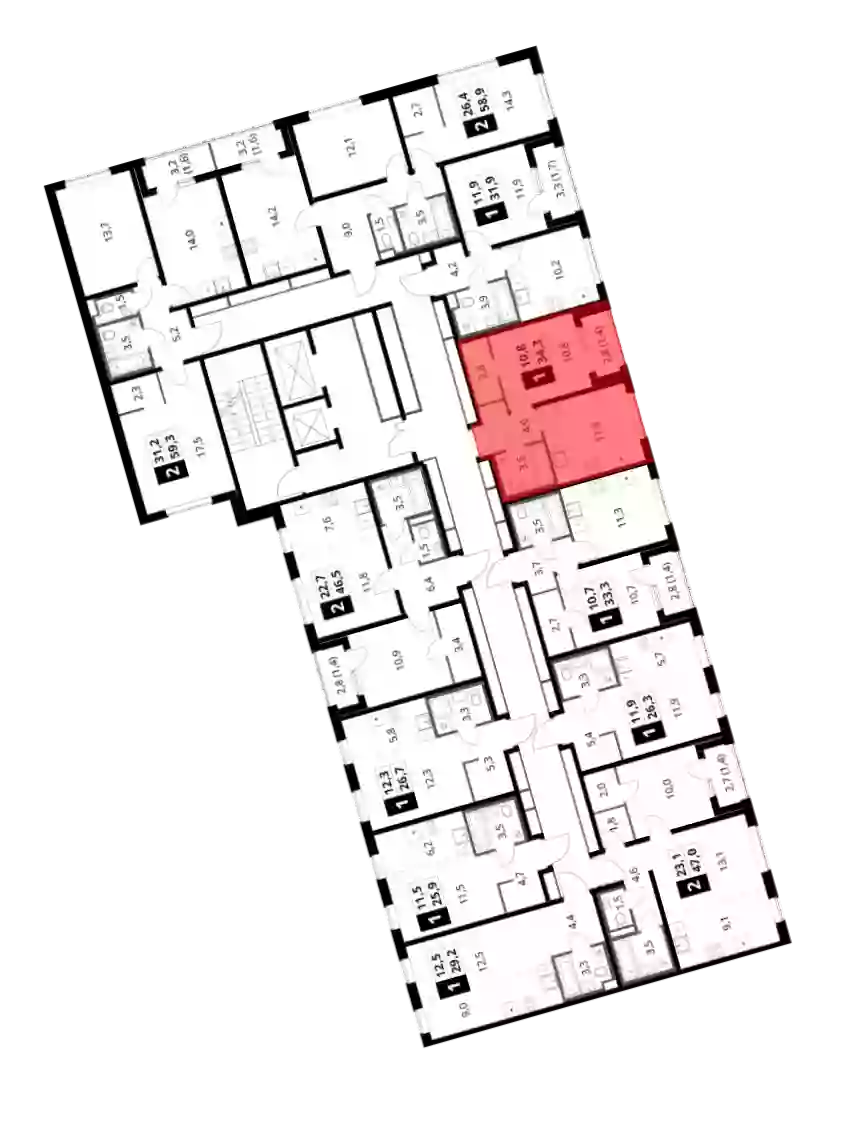 - Общая площадь 33.3 м²