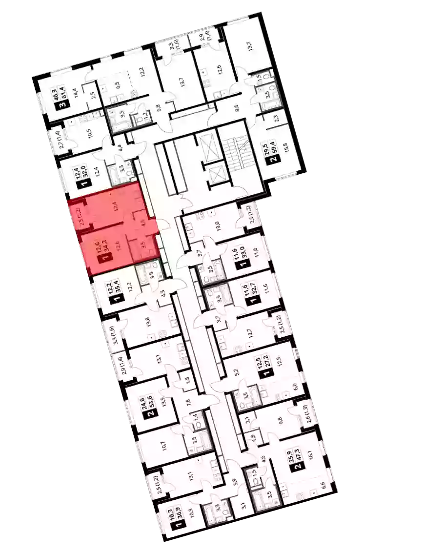 - Общая площадь 33.4 м²