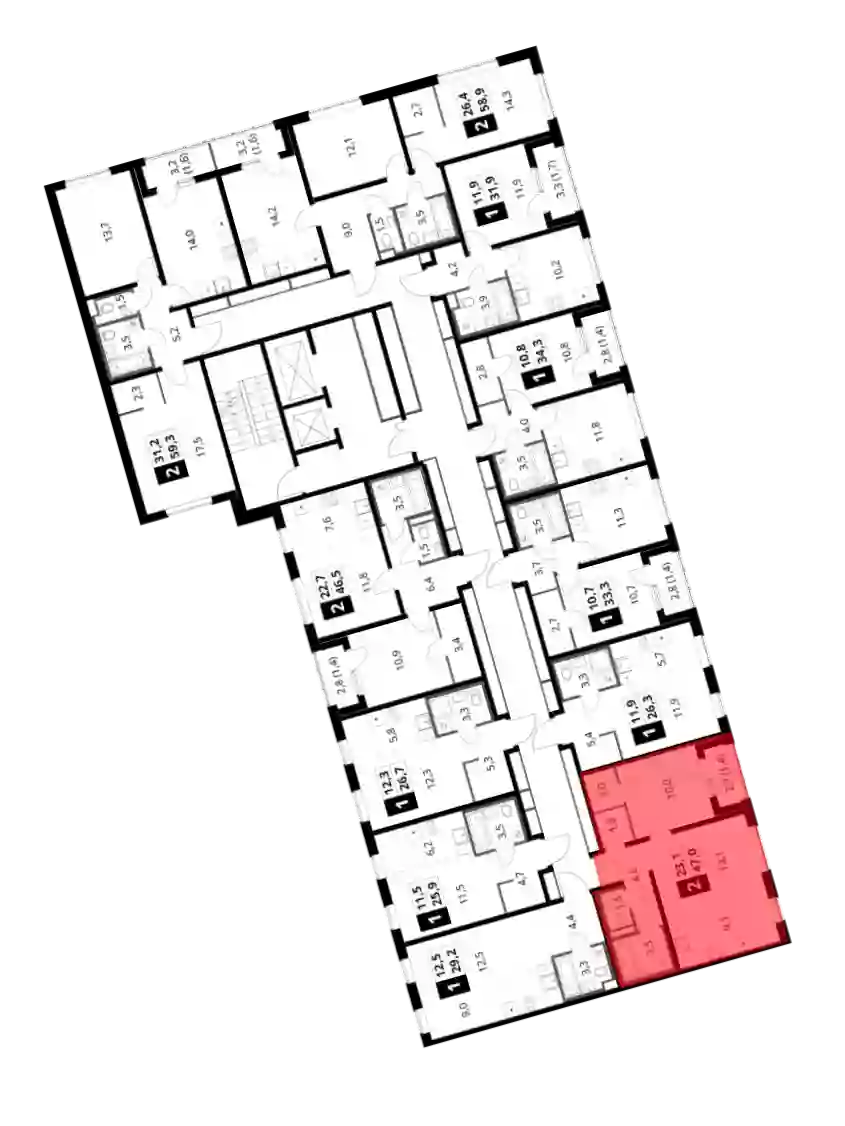 - Общая площадь 46.1 м²