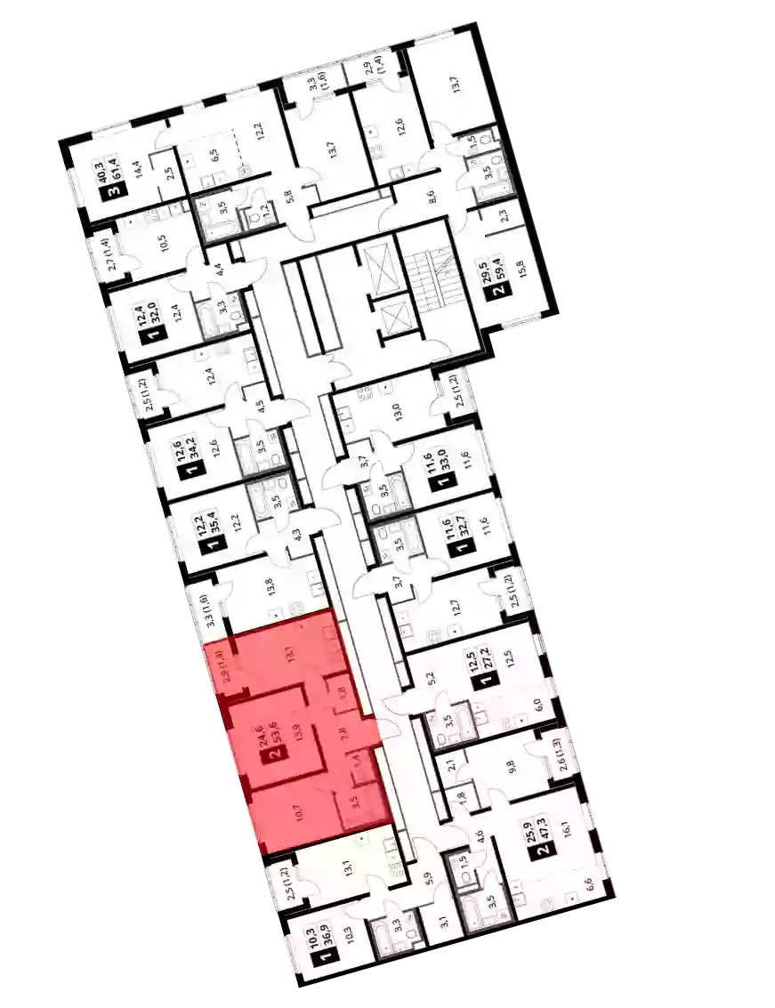 - Общая площадь 52.7 м²