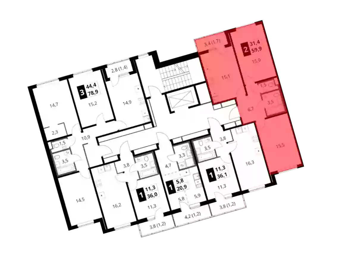 - Жилая площадь 31.4 м²