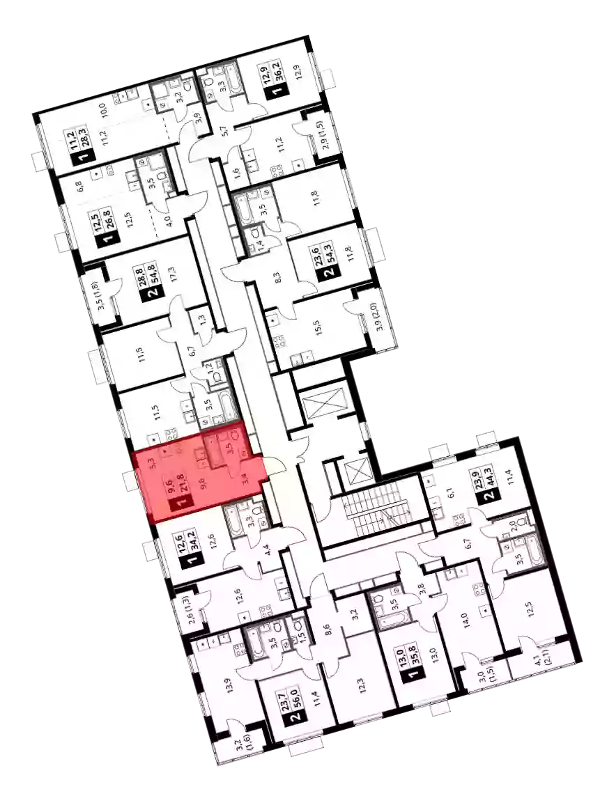 - Общая площадь 21.8 м²