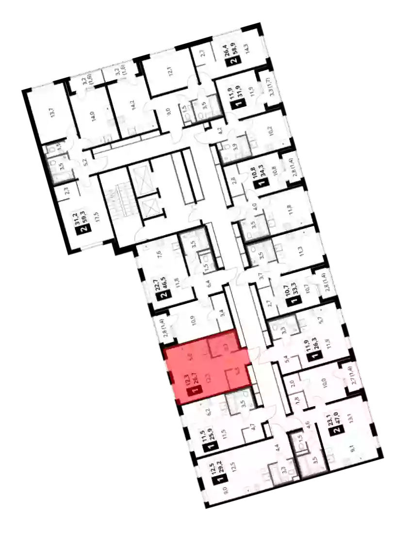 - Общая площадь 26.7 м²