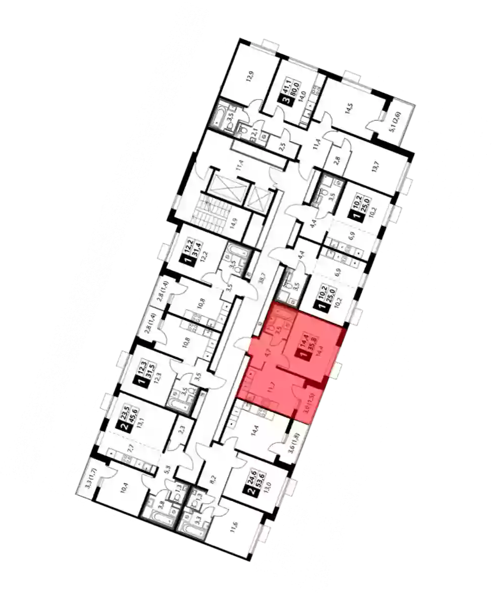 - Жилая площадь 14.3 м²
