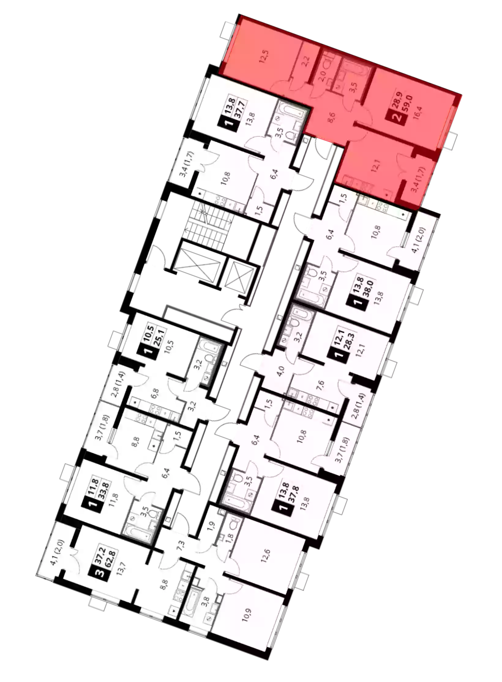 - Общая площадь 57.9 м²