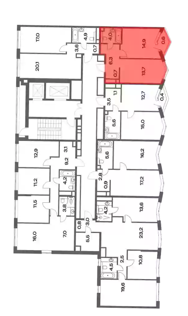 - Жилая площадь 14.9 м²