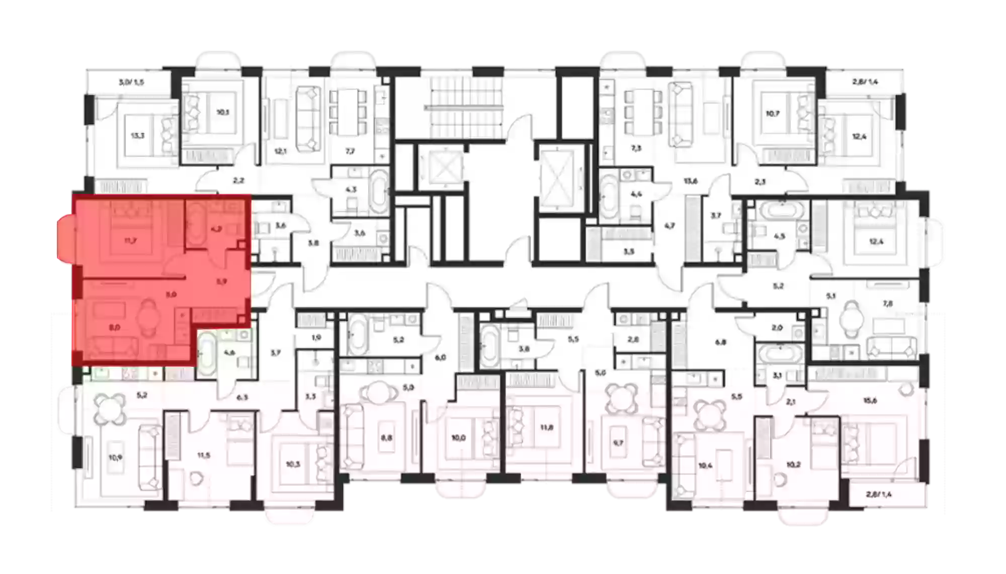 - Жилая площадь 11.7 м²
