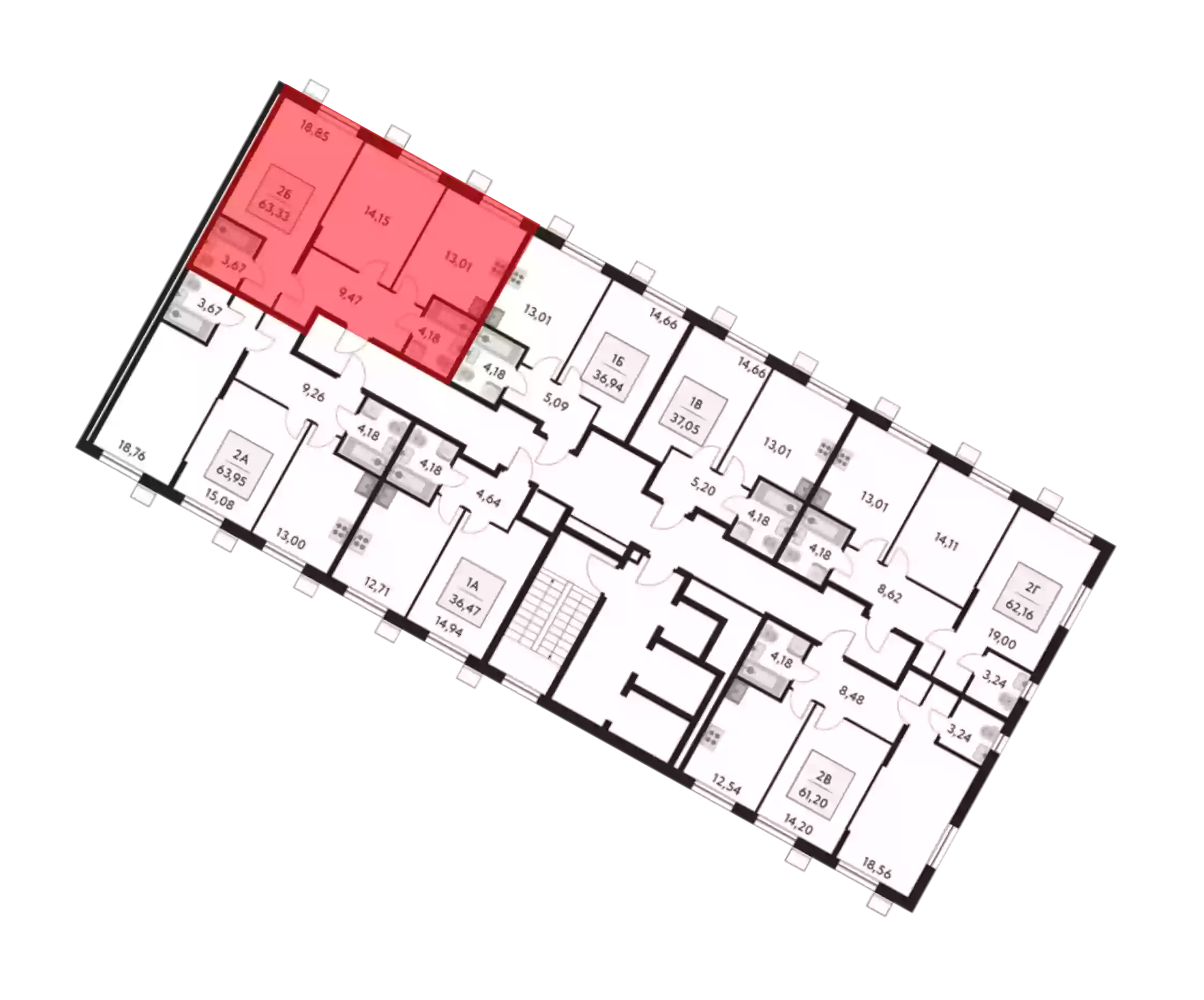 2-к.квартира, 63.33 м², 13 эт.