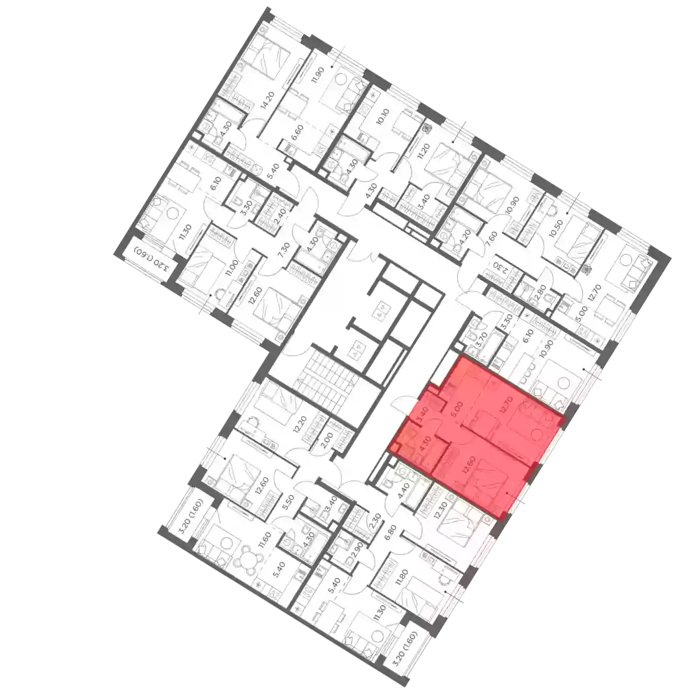 - Этажей в доме 12