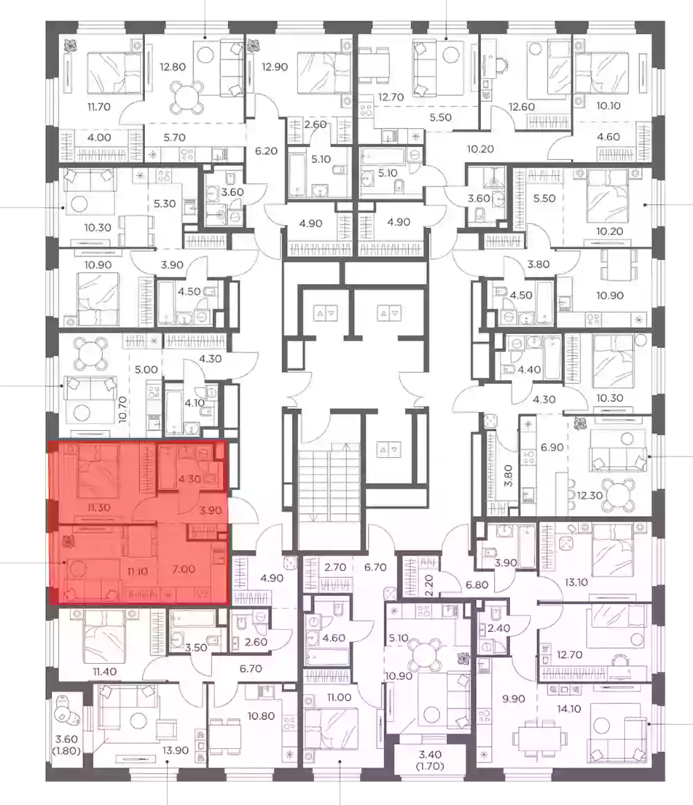 - Жилая площадь 11.3 м²
