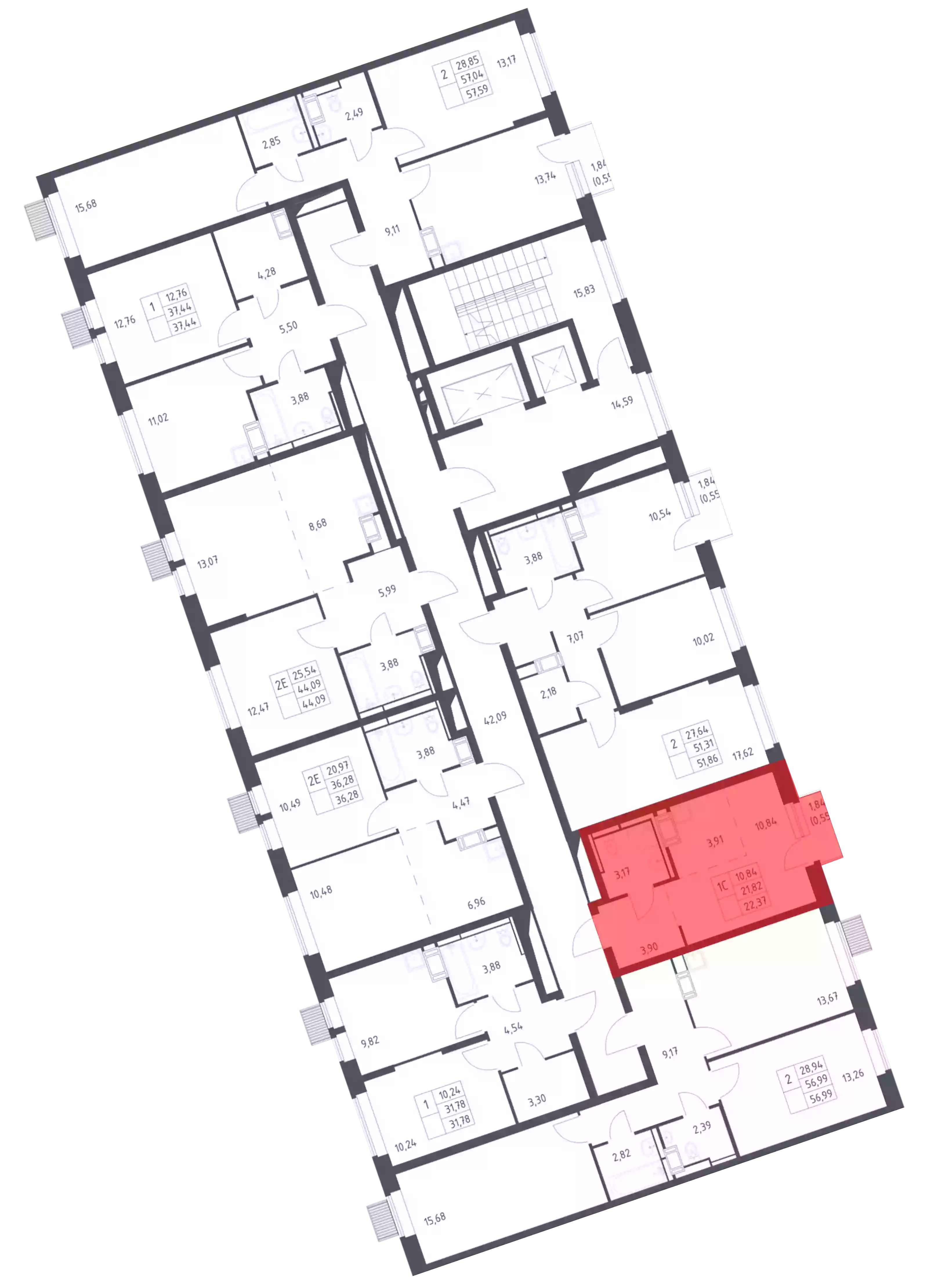 - Общая площадь 21.82 м²