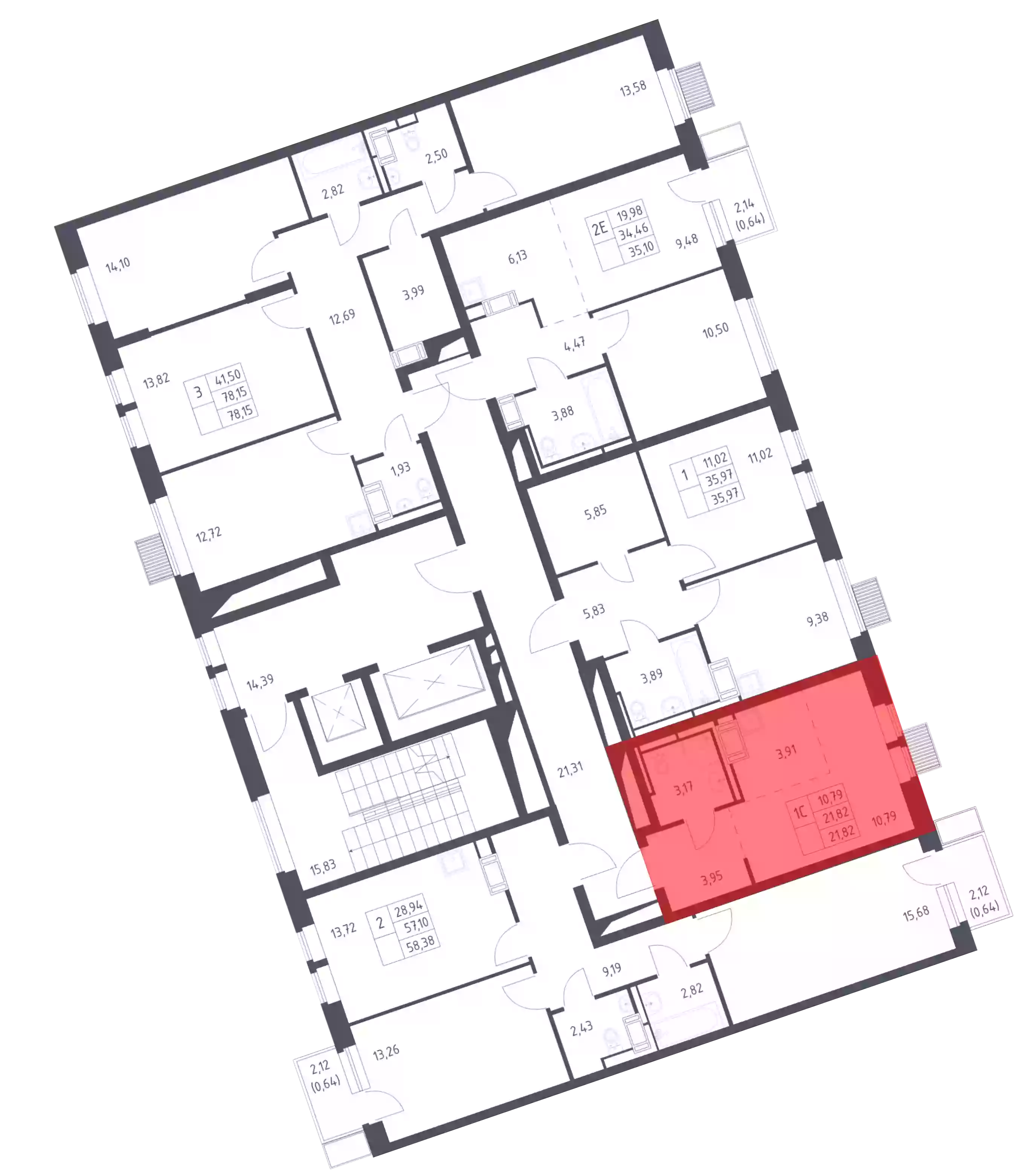 - Общая площадь 21.82 м²
