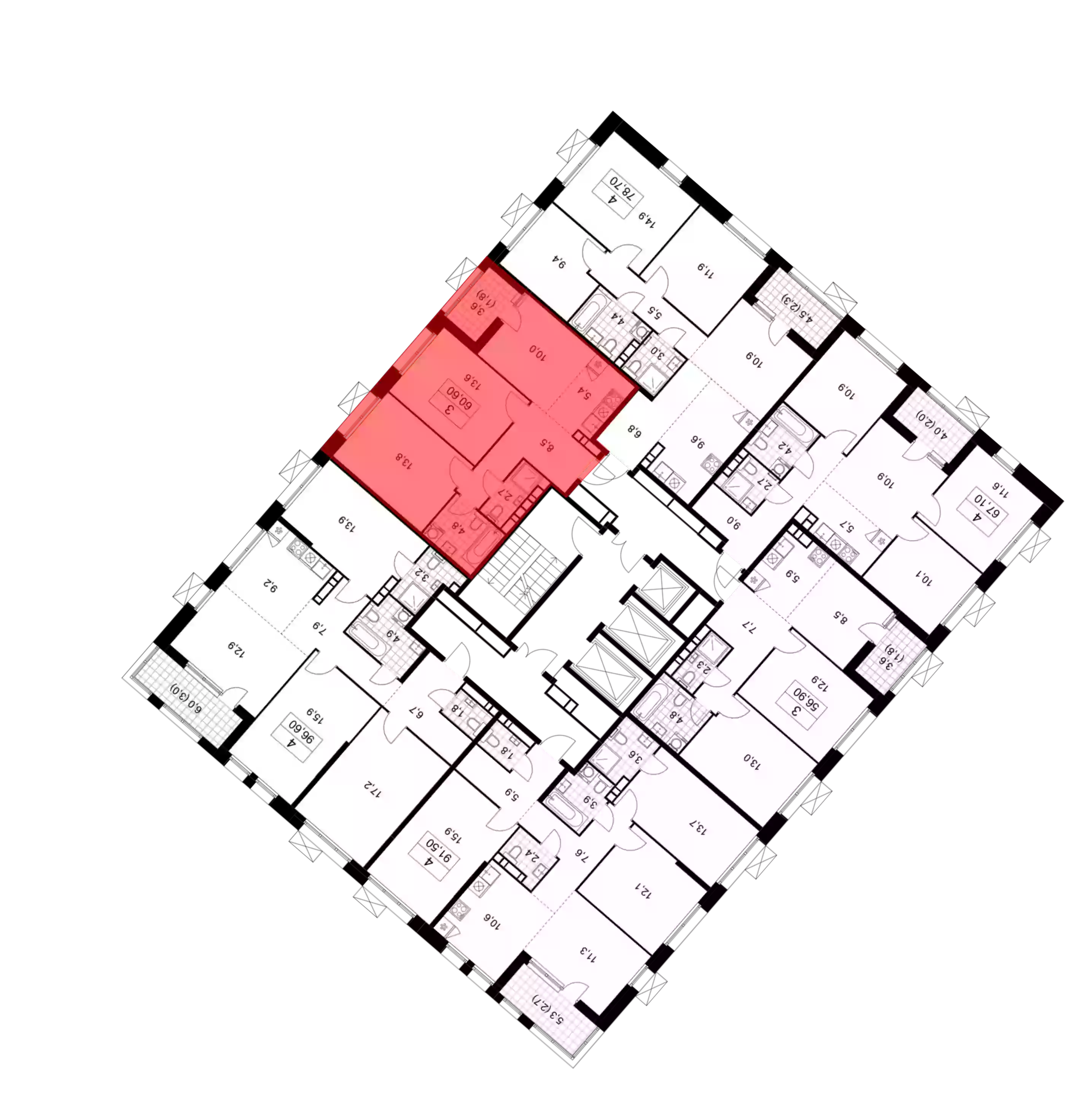 - Этажей в доме 21